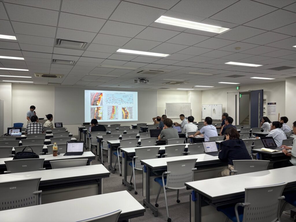 2025年9月22日に第9回のSlow-to-fast地震学カフェ(セミナー)を開催しました。今回は、2日後から開催されるInternational Joint Workshop on Slow-to-Fast Earthquakes 2025に先駆けて、基調講演者のYijian Zhou博士(カリフォルニア工科大学)とTianhaozhe Sun博士(カナダ地質調査所)によるセミナーを東京大学地震研究所で実施しました。Zhou博士には「Special Seismic and Aseismic Slip Events Observed Along the East Anatolian Fault Zone (EAFZ)」と題して、東アナトリア断層帯における特異な繰り返し地震活動や、2023年トルコ・シリア地震で誘発された主断層から離れた断層における非地震性すべりに関する研究を紹介していただきました。Sun博士には「A thin and weak Lithosphere-Asthenosphere Boundary (LAB) beneath the oceanic lithosphere and its effects on subduction earthquake cycle deformation」と題して、東北沖地震後の地殻変動データに基づくリソスフェア・アセノスフェア境界に関する研究について紹介していただきました。会場・オンライン合わせて領域内外から30名程度の参加者にお越しいただき、質疑応答の時間では、観測された繰り返し地震活動や誘発非地震性すべりを起こせる断層の力学特性や、リソスフェア・アセノスフェア境界の物質科学的な特性に関する議論など、広範な分野に亘った議論が展開されました。