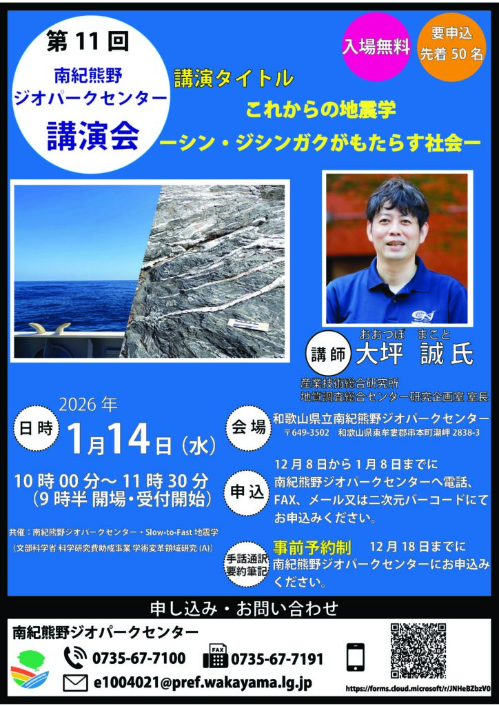 | 会場 | 南紀熊野ジオパークセンター(東牟婁郡串本町潮岬2838-3) |